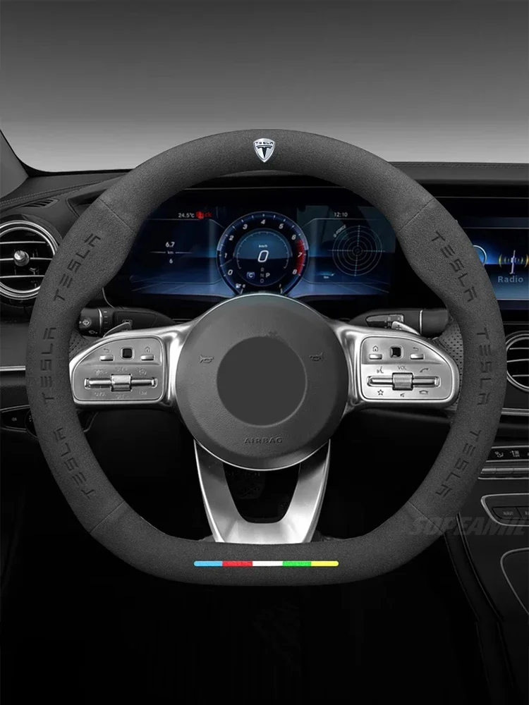 Suede Anti-Slip Breathable Steering Wheel Cover for Tesla Model 3 Y S X Roadster | Auto Interior Accessories