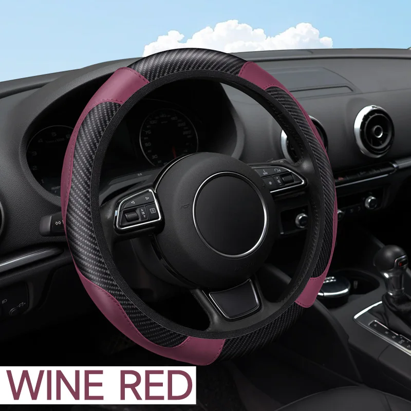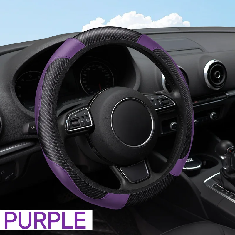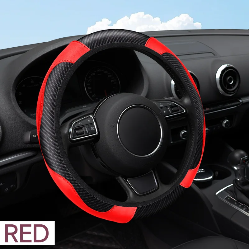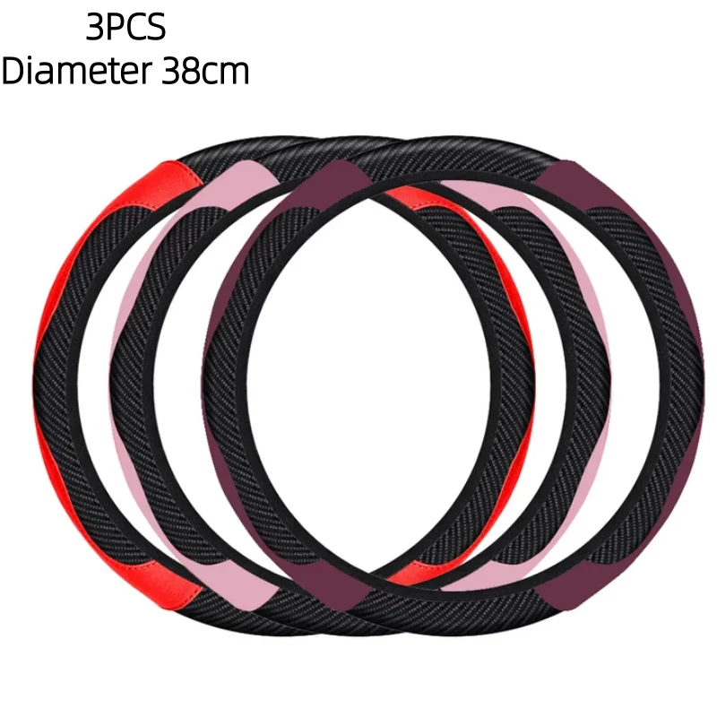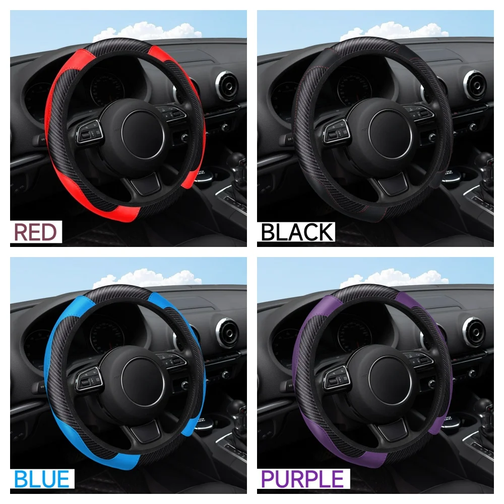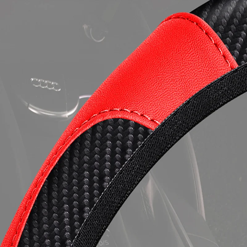Carbon Fiber Leather Embossed Car Steering Wheel Cover (Universal Fit)